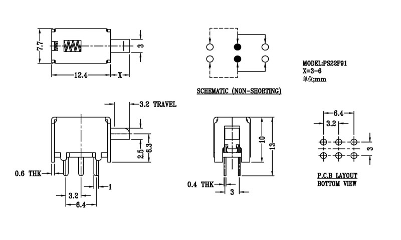 按鍵撥動開關(guān)技術(shù)參數(shù):