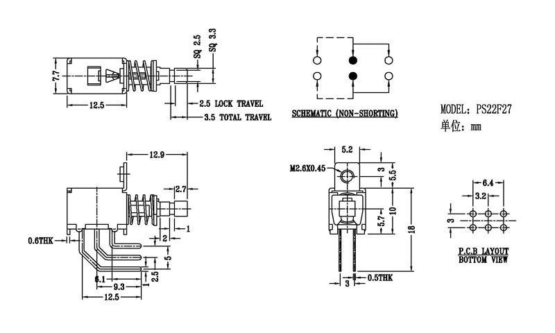 如需了解更多撥動開關-彎腳按鍵撥動開關PS-22F27信息請關注:m.lhrcb.cn