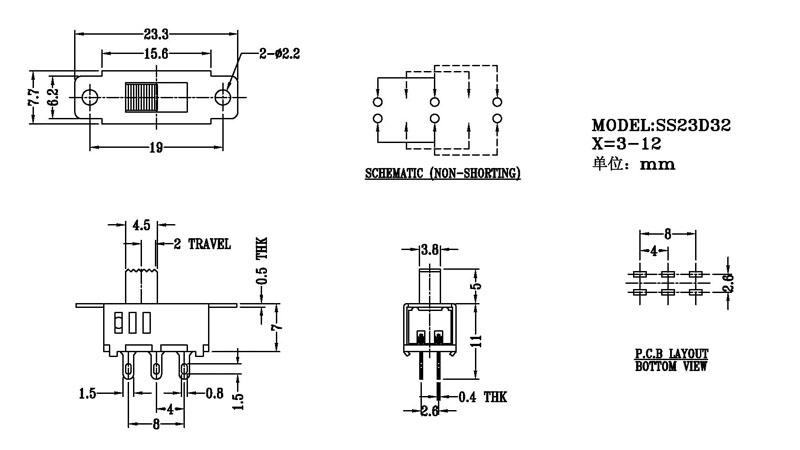 撥動開關是通過撥動開關柄使電路接通或斷開,從而達到切換電路的目的的。撥動開關常用的品種有單極雙位、單極三位、雙極雙位以及雙極三位等,它一般用于低壓電路,具有滑塊動作靈活、性能穩定可靠的特點,撥動開關主要廣泛用于:各種儀器/儀表設備,各種電動玩具,傳真機,音響設備,醫療設備,美容設備,等其它電子產品領域。