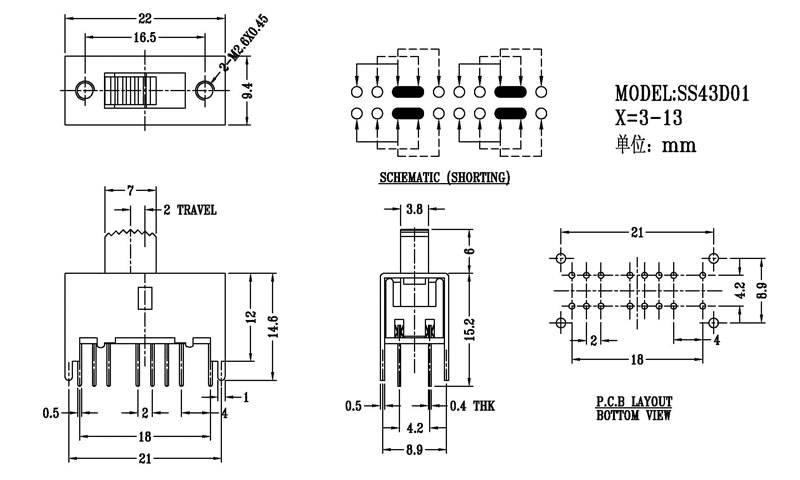 微型撥動開關技術參數: