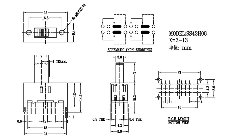 微型撥動開關技術參數: