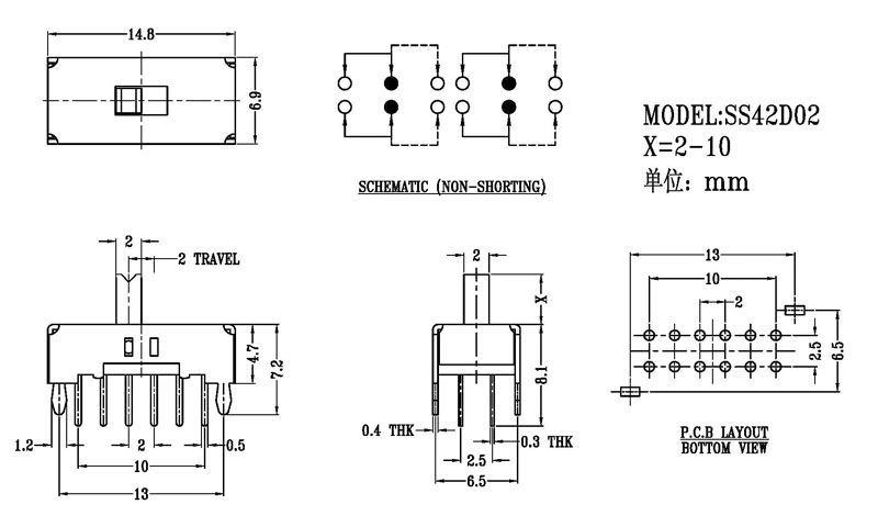 微型撥動開關技術參數: