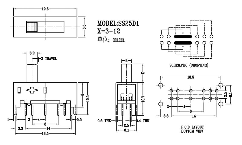 微型撥動開關技術參數: