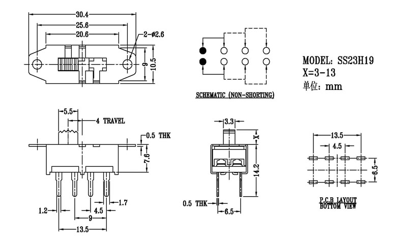 微型撥動開關技術參數: