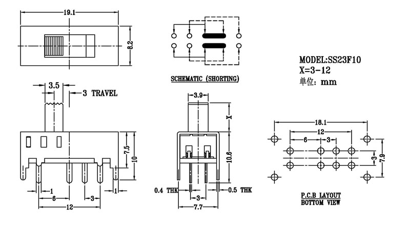 微型撥動開關技術參數: