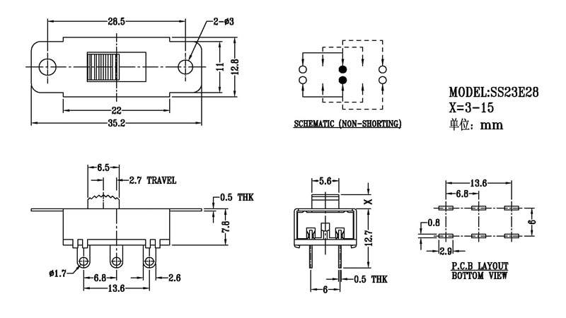 微型撥動(dòng)開關(guān)技術(shù)參數(shù):