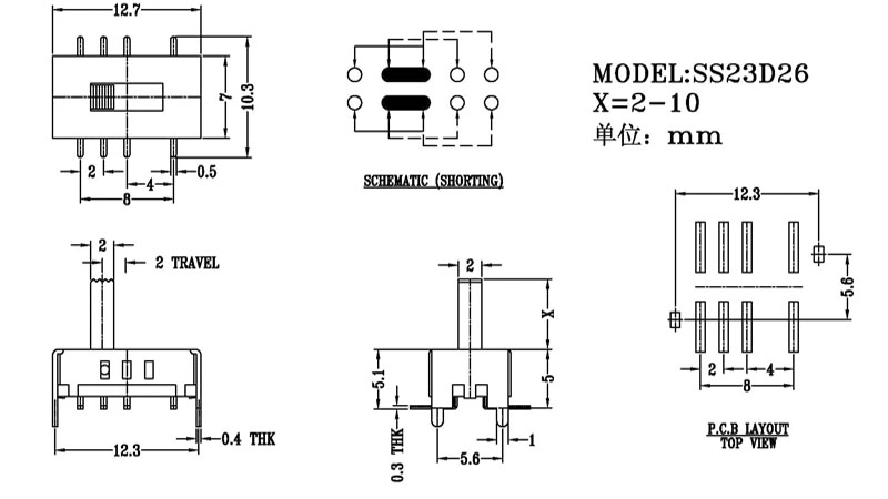 微型撥動開關技術參數: