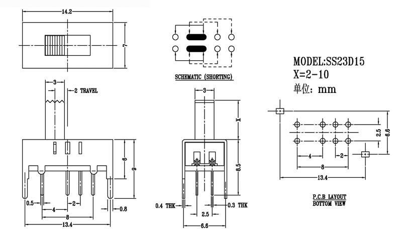 微型撥動開關技術參數: