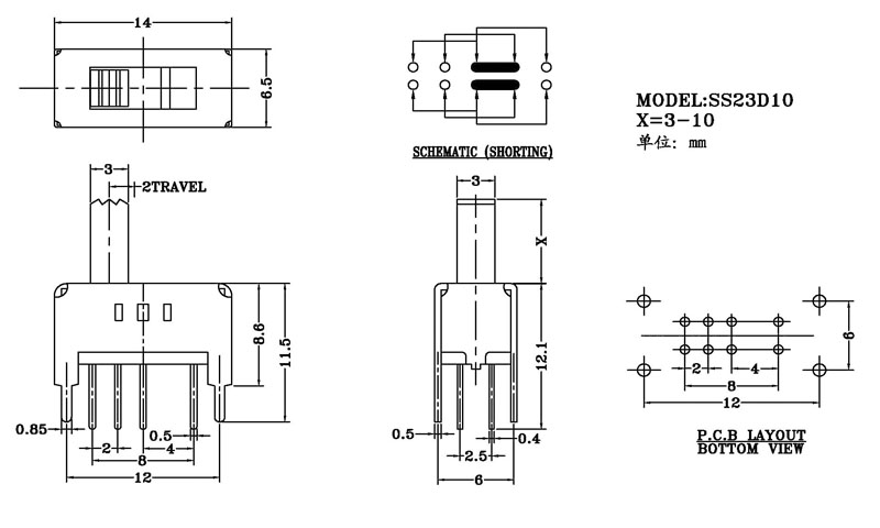 微型撥動(dòng)開(kāi)關(guān)技術(shù)參數(shù):