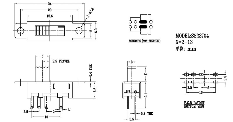 微型撥動開關技術參數: