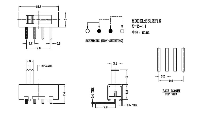 微型撥動開關技術參數: