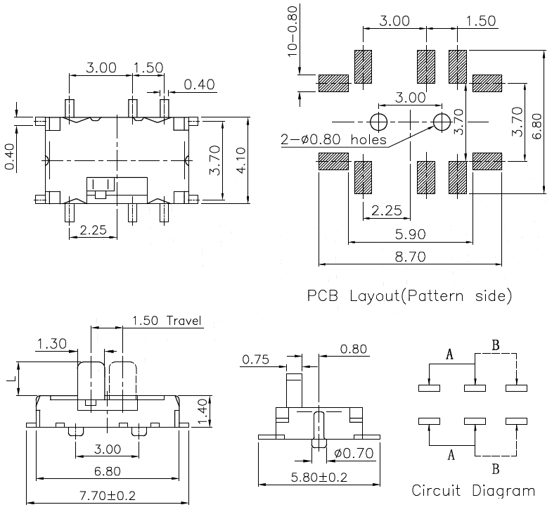 微型撥動開關技術參數: