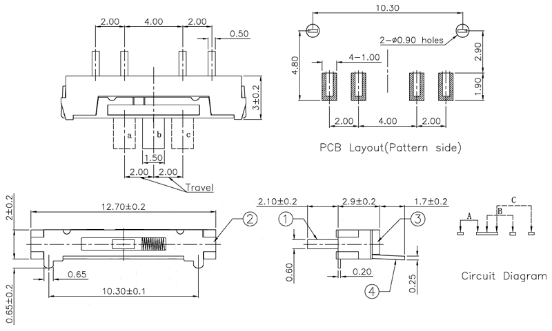 微型撥動開關技術參數: