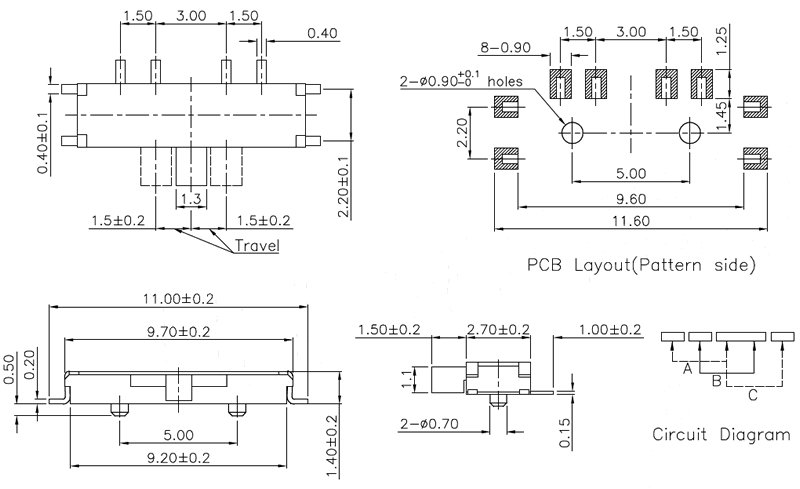 微型撥動開關技術參數:
